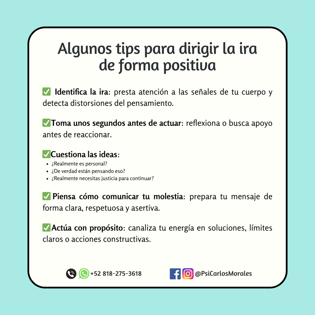 La ira no es tu enemiga: es una emoción natural que, si la aprendes a manejar, puede convertirse en una herramienta para defenderte de manera justa y construir relaciones más sanas. El problema no es sentir enojo, sino dejar que tome el control de tu vida.