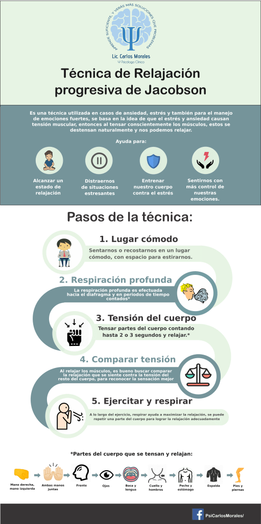 Hay muchas técnicas de relajación, una es esta, que funciona a la mayoría de las personas y se llama Relajación Progresiva de Jacobson: